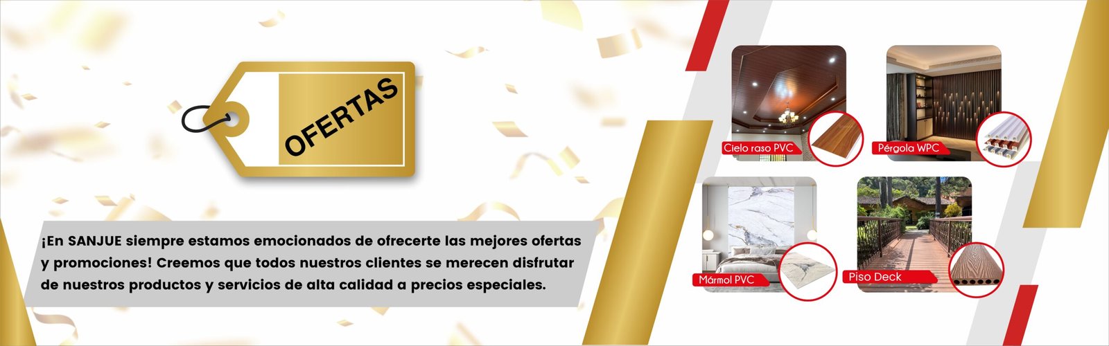 SANJUE es una empresa especializada en materiales de decoración con más de 15 años de experiencia. Ofrecemos productos innovadores para su decoración, productos modernos que facilita sus trabajos y sobre todos con excelente calidad. LED