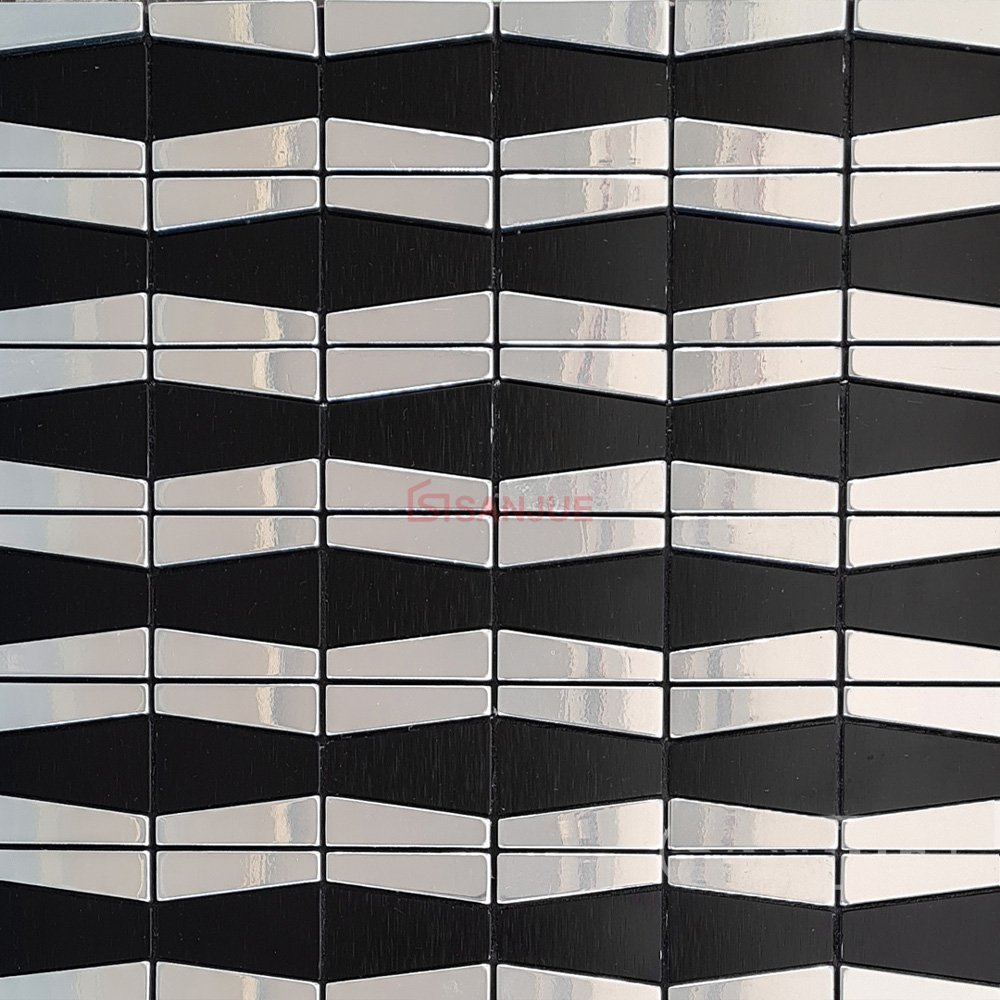 Mosaico Aluminio Decorativo de adhesivo, Resistente al agua y al fuego. También es muy estético, devolviendo la luz, permite iluminar una pieza, respetando los tonos metálicos, ideales para Baños, cocinas o para cualquier área que desea un diseño moderno y elegante.